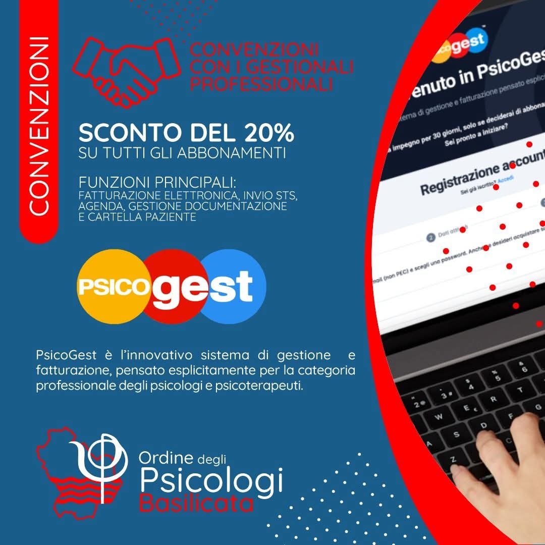 L’Ordine degli Psicologi della Basilicata ha attivato una convenzione con PsicoGest, software gestionale dedicato a psicologi e psicoterapeuti, pensato per supportare l’organizzazione dello studio professionale: dalla fatturazione alla gestione dell’agenda, fino alla documentazione clinica e alla cartella paziente.